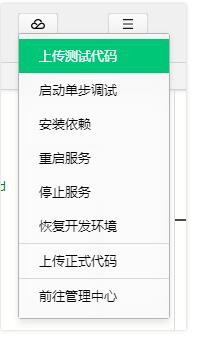 點擊界面右上角的【騰訊云】圖標(biāo),在下拉的菜單欄中選擇【上傳測試代碼】。